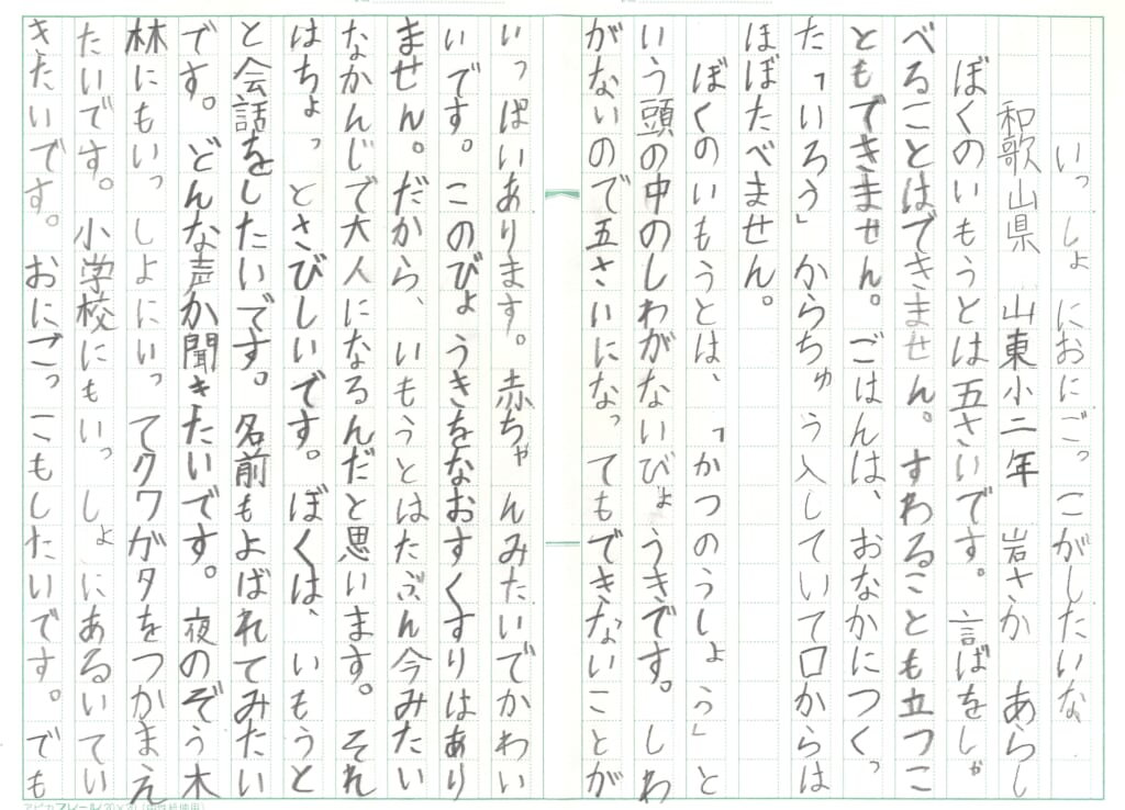 岩坂 新史さん「いっしょにおにごっこがしたいな」